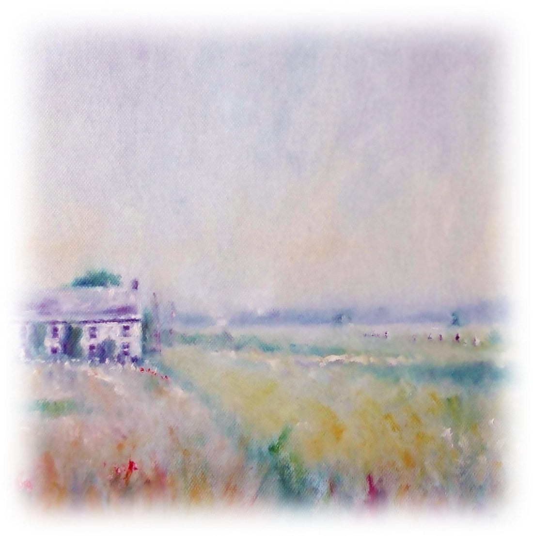 In this poem, I was trying to convey some of my childhood impressions of summer, my father, and his little piece of land in which he grew all our vegetables. The painting is a slightly digitally enhanced version of an original, showing a typical (although romanticised) summer scene in my neck of the woods – although there are very few woods!