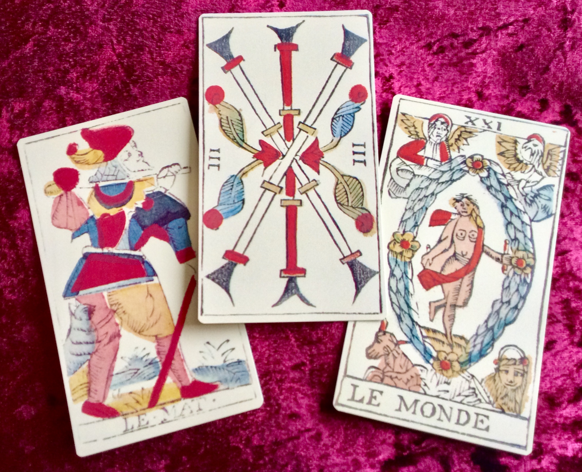 So I asked the question again, and I got a broadly similar answer. I used a three card spread, as I often do, the centre card being the overt position, the left card the covert position and the right card the outcome or resolution position.