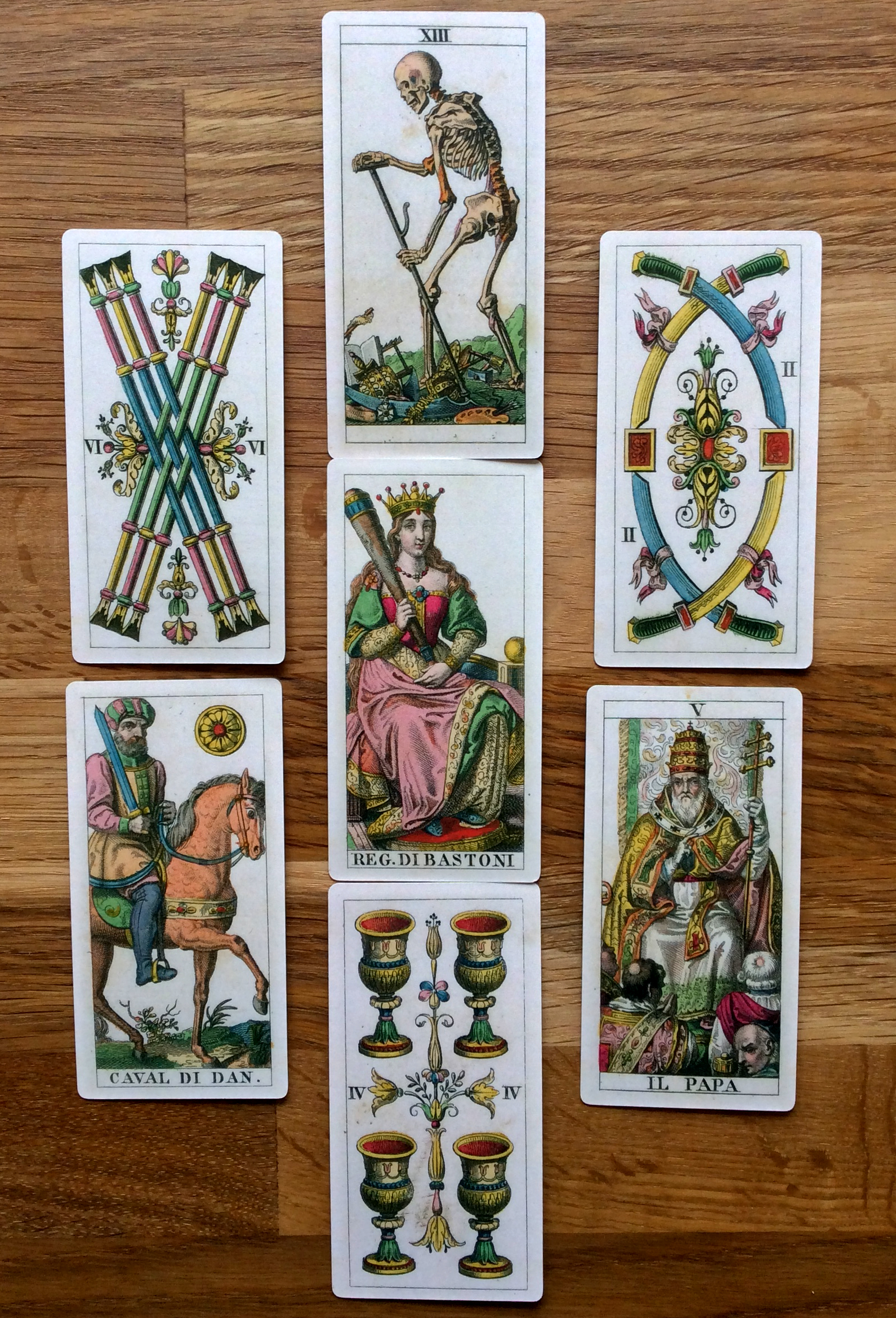 The Queen of Wands at the centre of the 7 day week spread to me indicates that qualities of courage, independence and confidence are growing; despite trying circumstances, the wish for freedom and a meaningul philosophy is growing paramount.